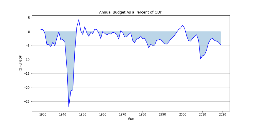 In the before times, people actually cared about the government deficit. Which may seem hard to believe now (see below). For a brief moment there was even a surplus during the late 90’s. Fiscal discipline is one of those quaint ideas right out of a Ken Burns documentary. However, ideas and principles only matter when people decide that they matter.