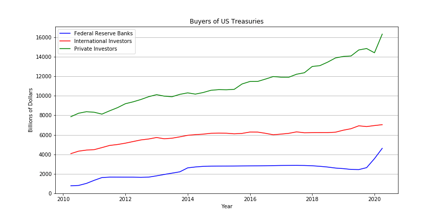 This probably reflects the standard risk-off trade of being long US bonds. The question here is to ask what will happen after the risk abates? If investors sell their safe assets and move into riskier assets, who or what will fill that gap in demand for all these treasuries? Perhaps the Federal Reserve will monetize it all and “write it off”.