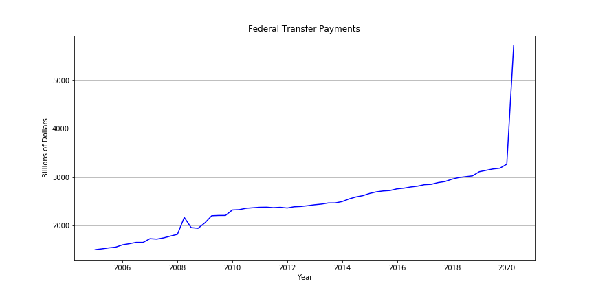 The coronavirus and the recession that was induced broke every macroeconomic chart. Transfer Payments and government expenditures have exploded this year due to the tremendous amount of federal stimulus. As you can see they are basically the same chart.
